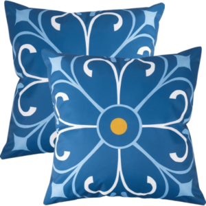 buitenkussens 45×45 blauw geel oranje wit design